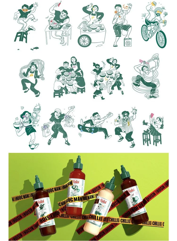 Personalized character designs and illustration for the Hoang family’s pantry line expansion with new broths, sauces and noodles.